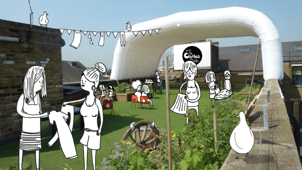 Dalston roofpark clothes swap fundraiser – for Childhope and Art Against Knives